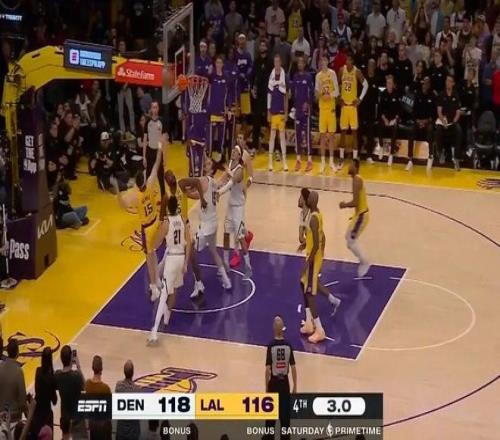 掘金最后0.5秒反绝杀不中,湖人拒绝了掘金的17分大逆转。