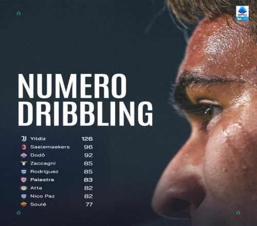 体育播报3月14日宣 意甲官方统计了本赛季球员的成功过人次数,并列出榜单,伊尔迪兹126次居首,萨勒马科尔斯96次第二。
